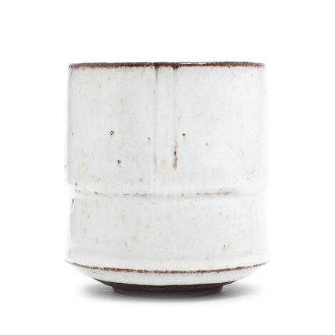 2545/865Mette Augustinus Poulsen: Skål af stentøj med lys glasur. Signeret monogram. Unik. H. 12,5. Diam. 11,5 cm.