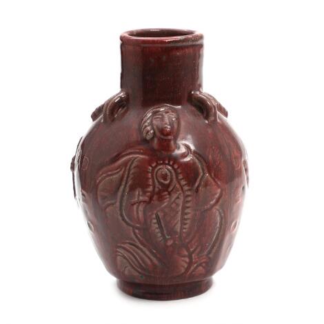 2545/875Jais Nielsen: Vase af stentøj dekoreret med okseblodsglasur. Signeret Jais, 2966. Kgl. P. H. 20 cm.