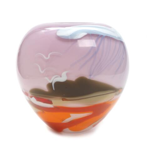 2545/902Finn Lynggaard: Vase af lyslilla glas dekoreret med landskab, 1986. Signeret og dateret FL, 86. H. 19 cm.
