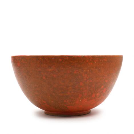 2545/874Kähler: Bordskål af lertøj dekoreret med uranglasur. Udført hos Kähler. H. 15,5. Diam. 30 cm.