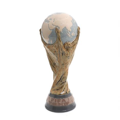 2545/899Salvador Furió: “FIFA World Cup Trophy” af porcelæn dekoreret med polykrom glasur. Lladro, 1982. H. 35 cm.