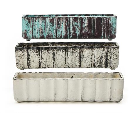 2545/522Niels Kähler: Tre rektangulære jardinierer af lertøj dekoreret med dobbeltglasur. Udført hos Kähler. L. 39,7-40,8. (3)