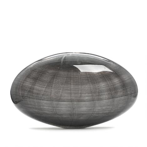 2545/624Tobias Møhl: Oval vase af klart glas med indlagt sort netmønster. Sign. T.M. 2007. L. 40.