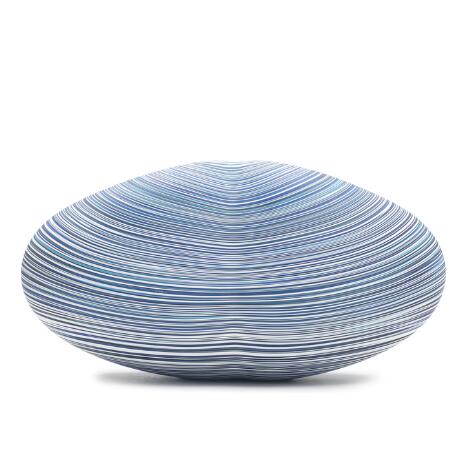 2545/627Trine Drivsholm: Organisk form af blå og hvid stribet glas. Sign. Trine Drivsholm. L. 40.