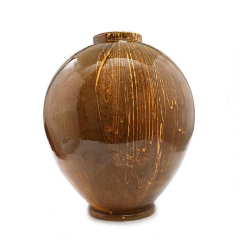 2545/536Kähler: Gulvvase af lertøj, dekoreret med uranglasur. Sign. HAK, Danmark. Udført hos Kähler. H. 53. Diam. 44 cm.