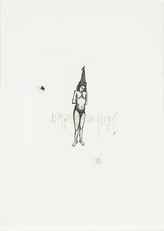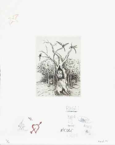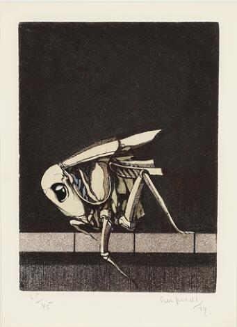 2545/917Assadour Bezdikian: "Personnage voulant pièger le temps". 1981. Signeret. Ætsning. Bladstørrelse 46 x 36 cm.