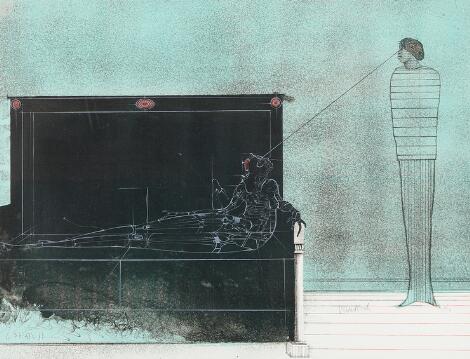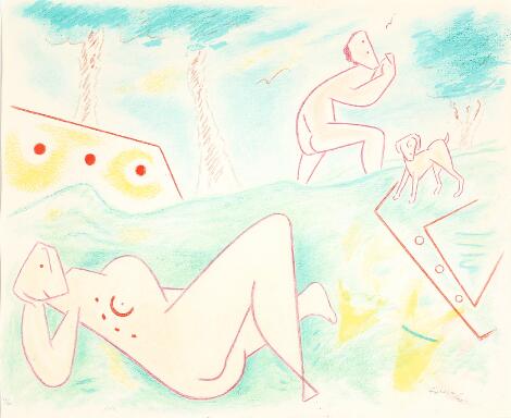 2545/832Paul Wunderlich: Surrealistiske kvindefigurer. Sign. Wunderlich, 12/70. Litografi i farver. Lysmål 49 x 64.