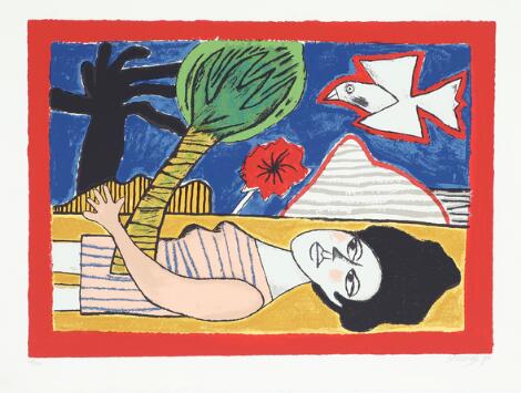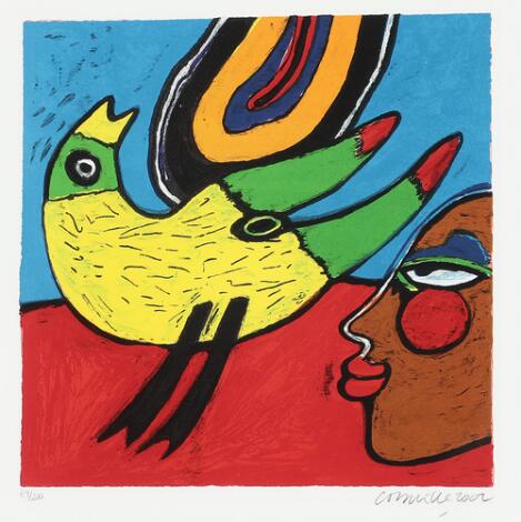 2545/676Corneille: "La femme et l'oiseau II", 2002. Signeret Corneille, 64/200. Litografi i farver. Lysmål 34 x 34 cm.