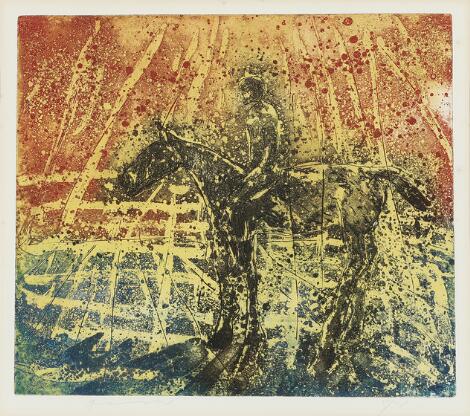 2545/855Frans Widerberg: "Rytter", 1994. Signeret Widerberg. Radering i farver. Lysmål 48 x 54 cm.