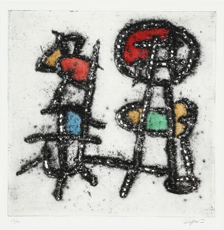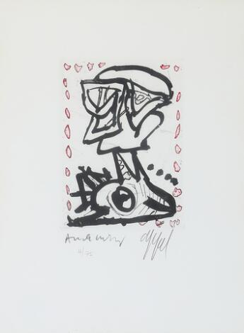 2545/887Pierre Alechinsky, Karel Appel: Uden titel. Signeret Alechinsky og Appel, 4/75. Radering i farver. Lysmål 26 x 20 cm.
