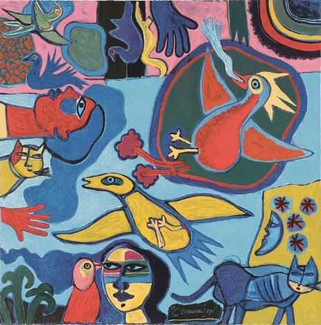 2545/654Corneille: "Petite musique de printemps", 1989. Signeret Corneille, 13/200. Serigrafi i farver. Bladstørrelse 77 x 75 cm.