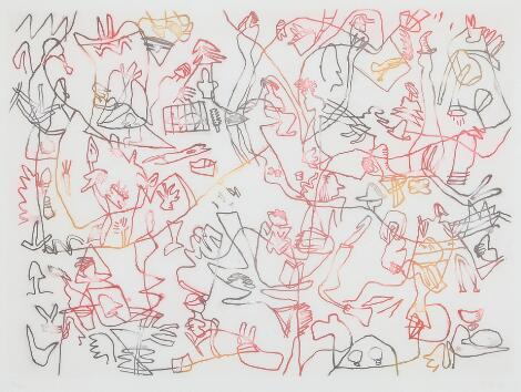 2545/713Tal R: Uden titel. Signeret Tal R, 17/100. Litografi i farver. 70 x 90 cm.