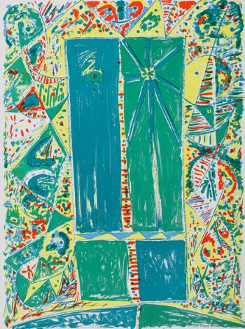 2545/703Egill Jacobsen: Grøn maske, 1976. Signeret og dateret. Litografi. Bladstørrelse 76 x 57 cm. Uindrammet.