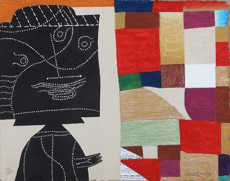 2545/574Ernest Mancoba: Uden titel. Sign. E. Mancoba 89, 11/120. Litografi i farver. Bladstørrelse 64,5 x 47.