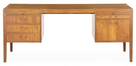 2545/937Danish cabinetmaker: Mahogany desk. Front with five drawers and two pullout leaves.