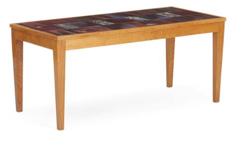 2545/998Frits Henningsen, Jens Thirslund: An oak coffee table. Top with polychrome tiles by Jens Thirslund.