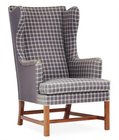 2545/944Kaare Klint: Wing back easy chair of mahogany. Upholstered with original blue and blue checkered Cotil wool.