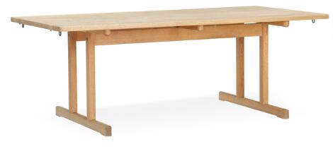 2545/987Børge Mogensen: “Shaker” solid oak dining table with two original red lacquered veneered extension leaves. (3)