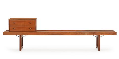 2545/982Torbjørn Afdal: "Krobo". Walnut bench and drawer section with med runner frame and raised edges. Manufactured by Bruksbo. H. 34/57. L. 200. W. 37 cm.