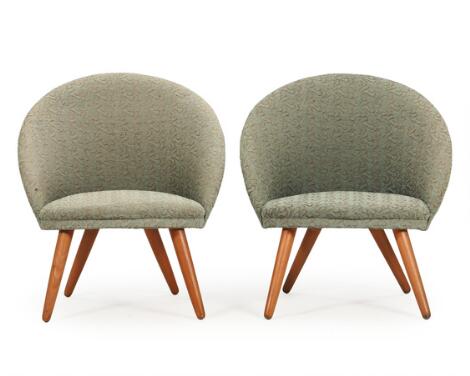 2545/934Danish cabinetmaker: A pair of easy chairs with beech legs. Upholstered with green wool. (2)