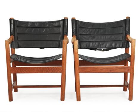 2545/919Danish furniture design: Two safari chairs with beech frame, seat, back, armrests and straps with brown leather. 1970s. (2)