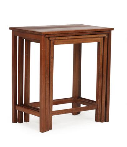 2545/985Danish cabinetmaker: A set of three solid mahogany nestings tables. 1940s. H. 52. W. 50. D. 30 cm. (3)