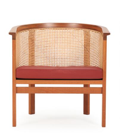 2545/954Rud Thygesen & Johnny Sørensen: "Kongeserien". Bergere chair of mahogany, seat upholstered with red leather. Manufactured by Botium.