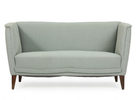 2545/947Danish furniture design: Two seater sofa with dark stained beech legs, upholstered with mint green wool. 1930-40s. L. 140 cm.