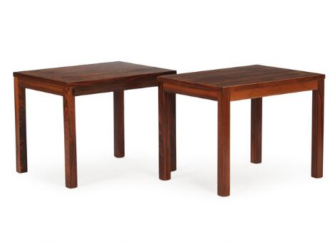 2545/924Danish furniture design: A pair of rosewood side tables. 1960s. H. 50. L. 63. W. 47 cm. (2)