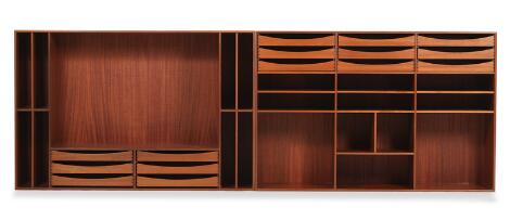 2545/969Mogens Koch: Two 1.5 solid mahogany bookcases, both with shelves and drawers. H. 76 cm. W. 114 cm. D. 27.5 cm. (2)