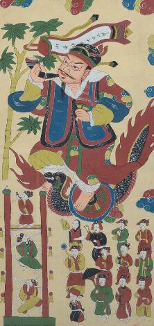 2548/108AarhusTwo Yao ceremonial paintings. Colour on paper. Northern Thailand. 19th-20th century. Visible size 117 x 55 cm. (2)