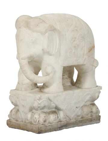 2548/102AarhusA 20th century whie marble figure in shape of an elephant standing on a lotus throne. H. 50. L. 46 cm.