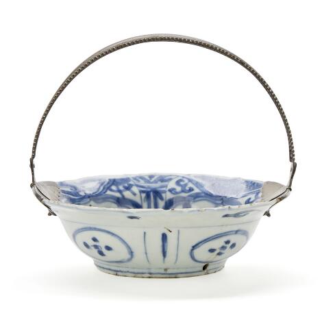 2548/93LyngbyA Chinese blue and white Wanli bowl with Dutch silver handle. Diam. 15 cm