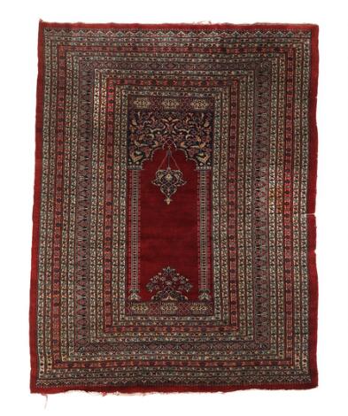 2548/62AarhusPakistani Lahore prayer rug with mihrab-design. 20th century. 178 x 143 cm.