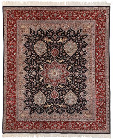 2548/306GlostrupKashmir tæppe, Pakistan. Medaljontæppe med flotte dyremotiver m.m. 21. årh. 247 x 290.