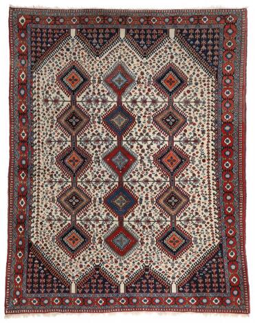 2548/344GlostrupA Yalameh carpet, Persia. Linked hooked medallions on an ivory field. 21st century. 245 x 191 cm.
