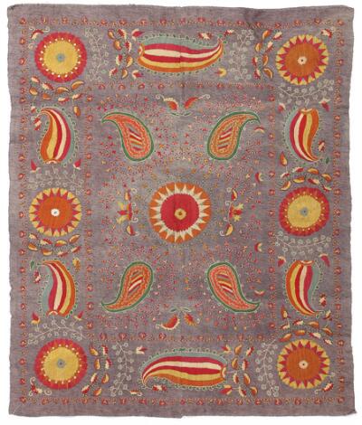 2548/152GlostrupA Lakai/Uzbekistan embroidery. Flower heads and boteh design, executed in silk. 20th century. 116 x 99 cm.