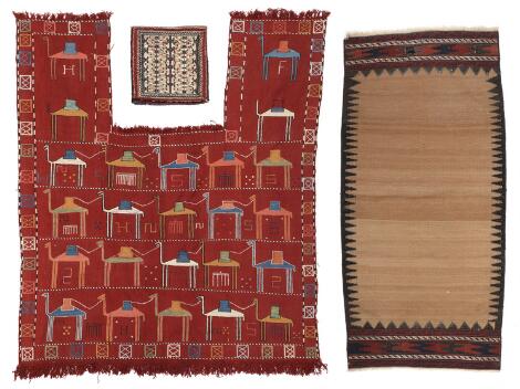 2548/297GlostrupThree Oriental tribal weavings. Verneh cover, Balouch sofreh and Luri-Baktairi tribal storage bag. 20/21. century.(3)
