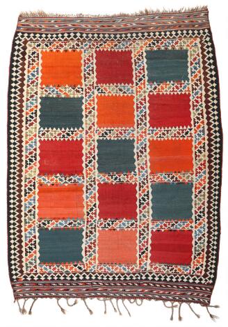 2548/337GlostrupKhasgai kelim, syd Persien. Design med felter i forskellige farver. 20. årh.s anden halvdel. 177 x 228.