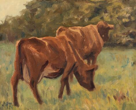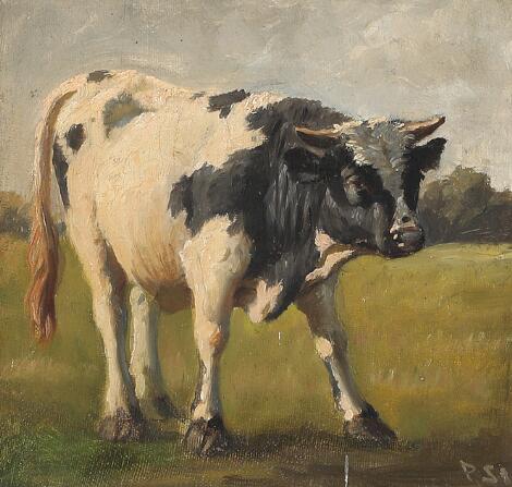 2548/255AarhusPoul Steffensen: A cow. Signed P.St. Oil on canvas. 18 x 19 cm.