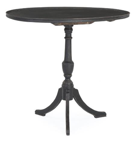 2548/252LyngbyA black painted oval Baroque style tilt-top table. Sweden, 19th century. H. 77. W. 88 cm. D. 64.
