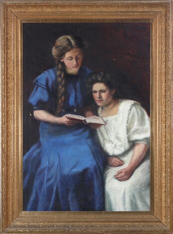 2548/269AarhusMartha Holmbom: Girls reading. Signed and dated M Holmbom, 1909. Oil on canvas. 116 x 79 cm.
