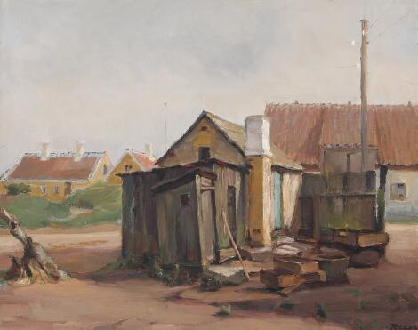 2548/259AarhusMarx Reese: "Gamle Huse i Østerby, Skagen". Signed Reese. Oil on canvas. 40 x 50 cm.