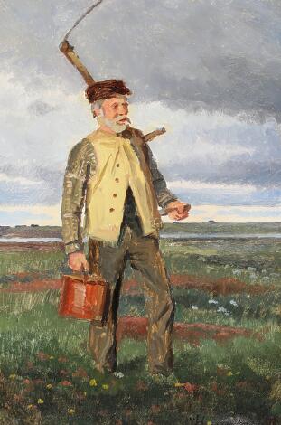 2548/264AarhusHans Smidth: A field worker. Signed Hans Smidth. Oil on canvas. 29 x 20 cm.