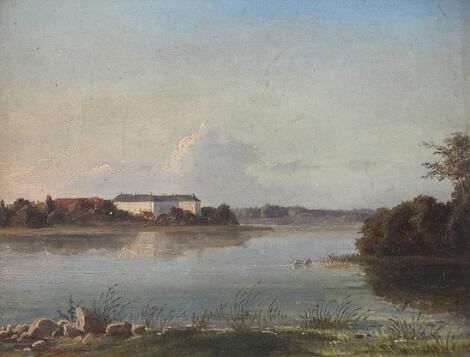 2548/270AarhusPainter unknown, 19th century: View of Sorø Lake towards Sorø Academy. Unsigned. Oil on cardboard. 19 x 24 cm.