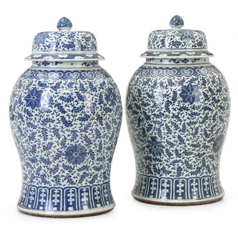 2548/260LyngbyA pair of large Chinese blue and white jars and covers, Republic. H. 62 cm. (2)