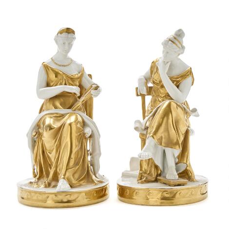 2548/271LyngbyTwo early 20th century gilt porcelain figurins, Scheibe-Alsbach. (2)