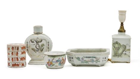 2548/265LyngbyA collection of various Chinese enamelled porcelain pieces, late Qing dynasty - Republic. (5)