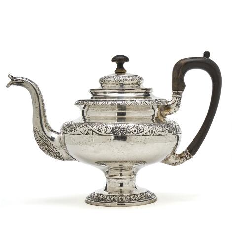 2548/257LyngbyDanish late empire silver tea pot. Maker Conrad Schrøder, Copenhagen 1836. Weight 518 g. H. 18.5 cm.