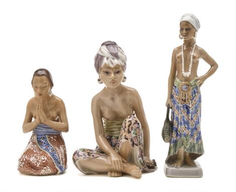 2548/274LyngbyJens Peter Dahl-Jensen: Three porcelain figurines decorated in colours. Dahl-Jensen. H. 17-26 cm. (3)